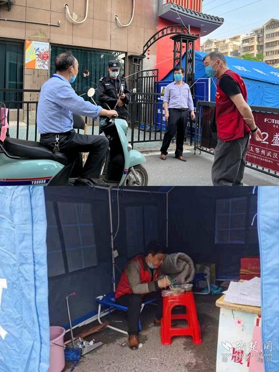 4月17日,是鄂州全面封城的第7天,也是方東銀在社區(qū)值守的第4個(gè)日子。不論是朝陽升起,還是星滿夜空,防疫卡點(diǎn)總能見到他的身影,眼神堅(jiān)毅,身軀挺拔。