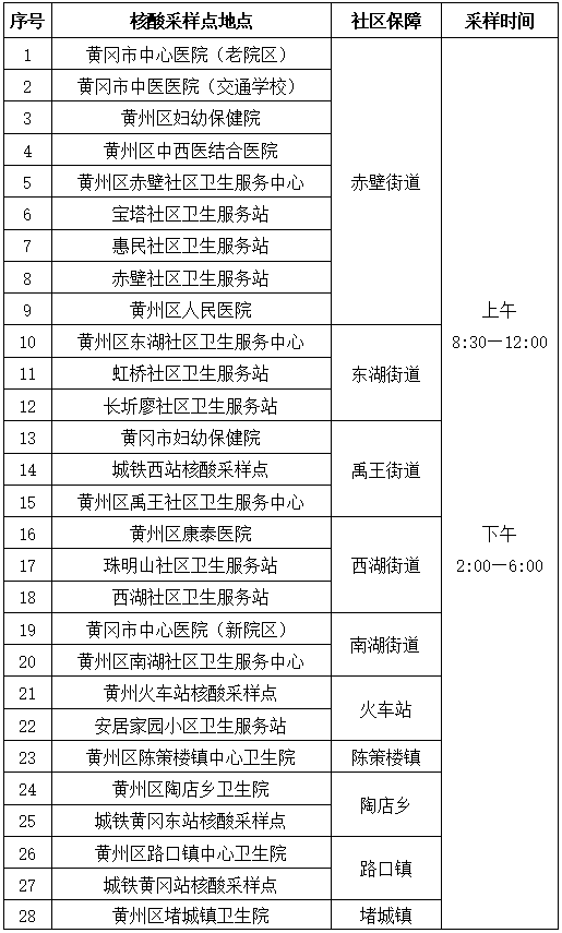 附:黃州區(qū)調(diào)整后的核酸檢測(cè)采樣點(diǎn)