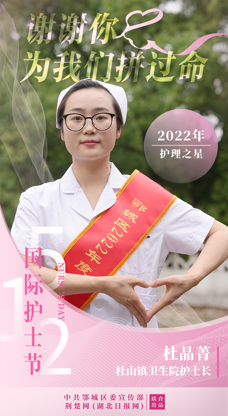杜晶菁,杜山鎮(zhèn)衛(wèi)生院護士長。疫情期間每天采集核酸上千人,她說:“即使穿著厚厚的防護服,流下的也是幸福感動的汗水?!?/p>