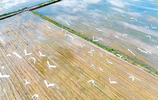 日前,記者在房縣軍店鎮(zhèn)上茅坪村看到,一群白鷺在千畝生態(tài)稻田上空翩翩飛舞。近年來(lái),該縣牢固樹(shù)立“綠水青山就是金山銀山”發(fā)展理念,大力推廣綠色高質(zhì)高效水稻生產(chǎn)模式,減少農(nóng)藥和化肥使用量,生態(tài)環(huán)境不斷改善,吸引多種鳥(niǎo)類棲息繁殖。