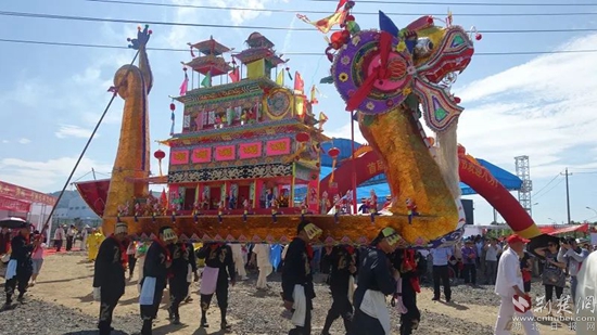 而作為今年的打頭陣的活動(dòng),旱龍舟巡游是本屆旅游節(jié)另一大看點(diǎn)。經(jīng)過道士占卦吉日,龍舟出廟,由頭人喝彩后宣布出游。此時(shí)鞭炮沖天,鼓樂齊鳴,旌旗林立,眾人抬著龍舟浩蕩前行,場面十分壯觀。