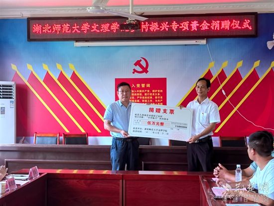 隨后,湖北師范大學文理學院機關(guān)第一黨支部和子山村黨支部聯(lián)合開展了6月份支部主題黨日活動。常務副院長楊學斌代表學校向子山村捐贈5萬元鄉(xiāng)村振興專項資金。