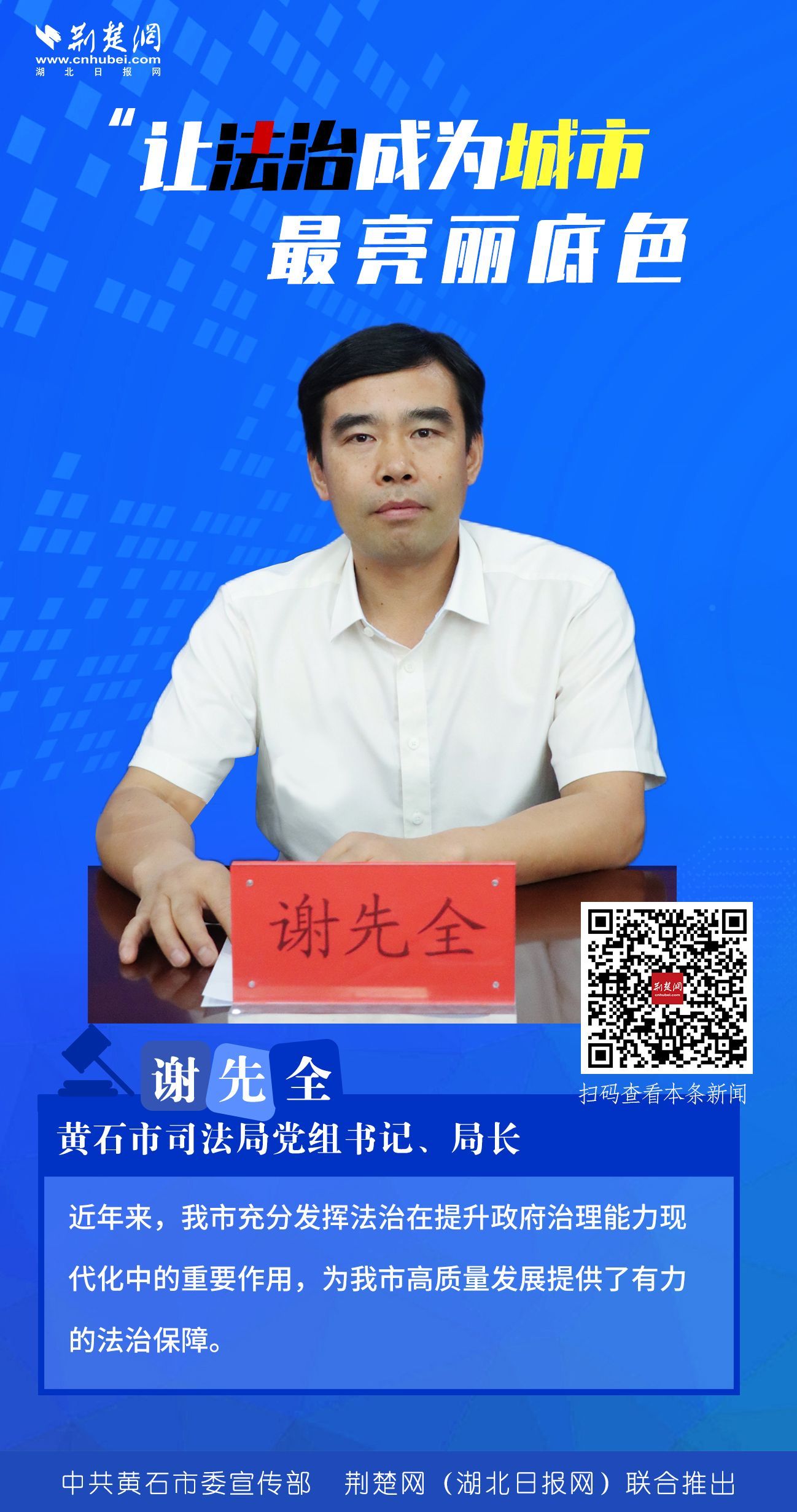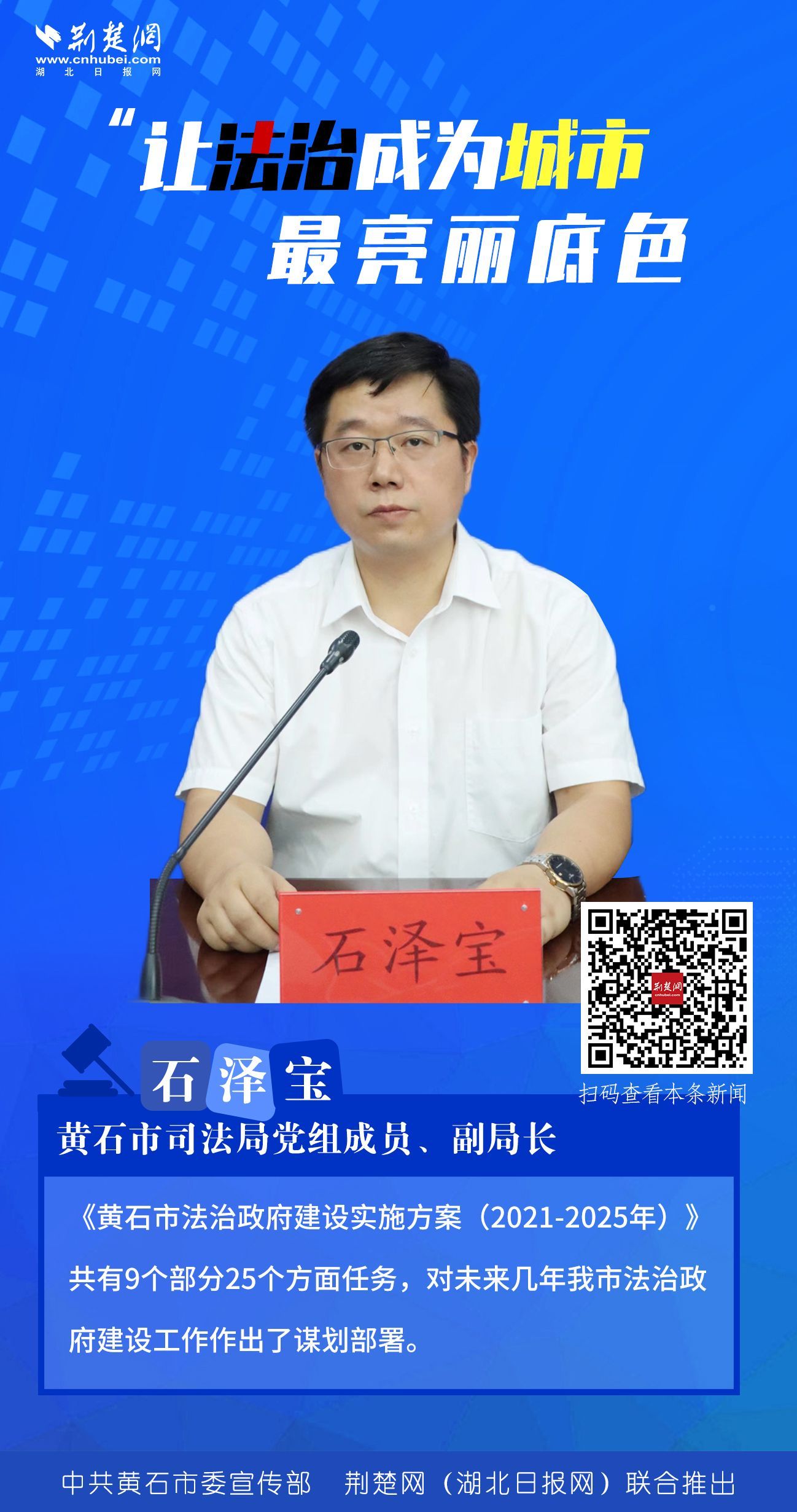 近年來,黃石市堅持以建成人民滿意的法治政府為目標(biāo),以《黃石市法治政府建設(shè)實施方案(2021-2025年)》為抓手,不斷將法治政府建設(shè)向縱深推進,讓法治成為城市最亮麗底色。