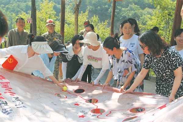 為迎接七一建黨節(jié)和黨的二十大,6月25日,市東風(fēng)小學(xué)組織開(kāi)展紅色團(tuán)建活動(dòng)。圖為黨員老師在觀摩紅軍長(zhǎng)征路線圖。