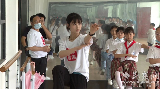 同時(shí),武漢體育學(xué)院新聞傳播學(xué)院暑期社會(huì)實(shí)踐隊(duì)在浠水縣開(kāi)展了“探尋體育初心·助力鄉(xiāng)村振興” 為主題的“三下鄉(xiāng)”社會(huì)實(shí)踐活動(dòng)。在縣實(shí)驗(yàn)小學(xué)內(nèi),曾榮獲全國(guó)青運(yùn)會(huì)武術(shù)套路比賽冠軍的武體學(xué)子連志蘋(píng)帶領(lǐng)學(xué)生練習(xí)武術(shù),讓孩子們近距離感受體育的魅力和運(yùn)動(dòng)的快樂(lè)。