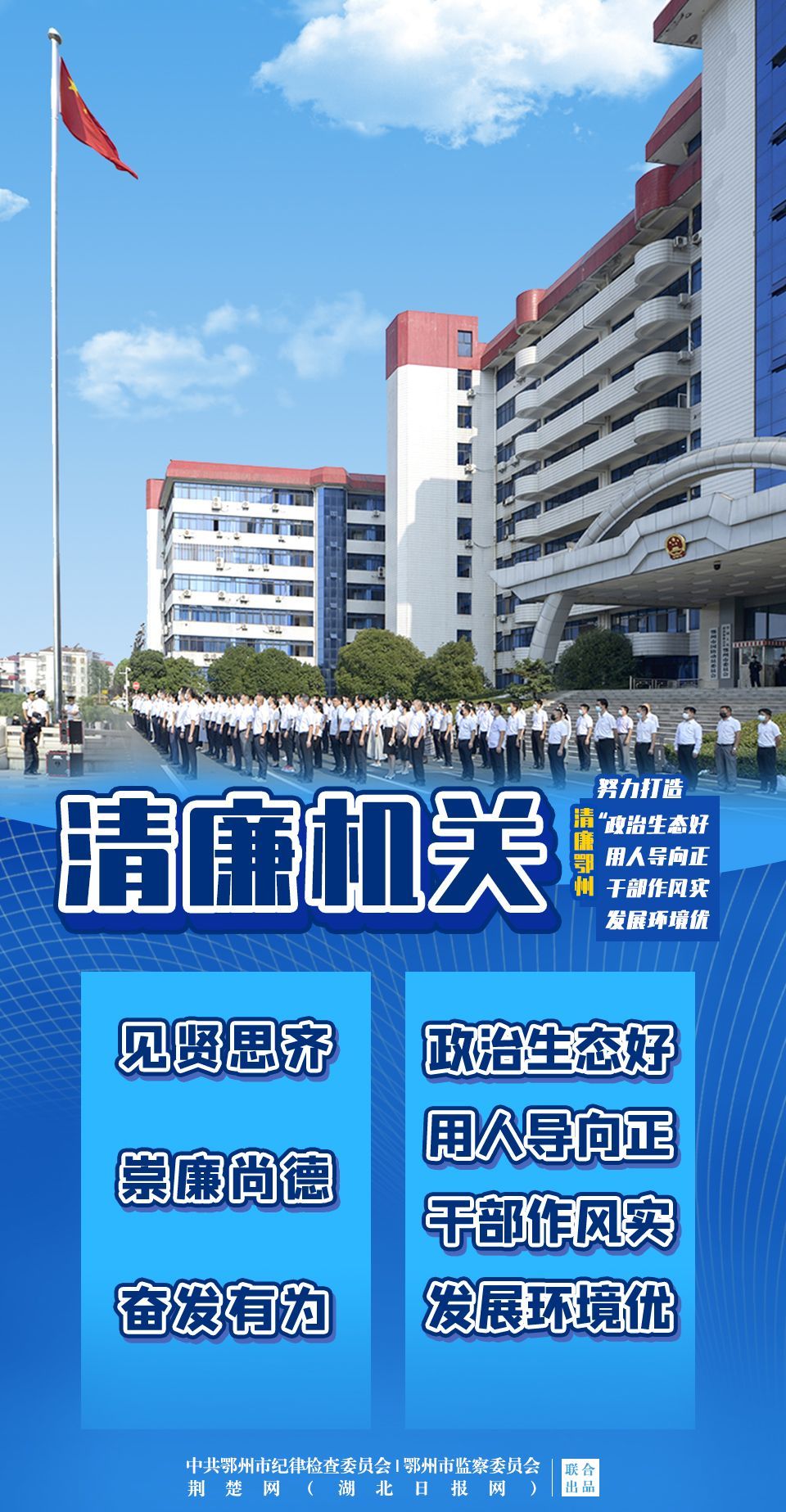 今年以來(lái),鄂州市結(jié)合實(shí)際,從建設(shè)清廉機(jī)關(guān)、清廉企業(yè)、清廉學(xué)校、清廉醫(yī)院、清廉村居、清廉家庭、清廉文化7個(gè)方面做出部署,引導(dǎo)全社會(huì)崇廉尚廉,努力打造“政治生態(tài)好、用人導(dǎo)向正、干部作風(fēng)實(shí)、發(fā)展環(huán)境優(yōu)”的清廉鄂州,為鄂州加快建成“兩區(qū)一樞紐”賦能添彩,為黨的二十大勝利召開營(yíng)造風(fēng)清氣正、正氣充盈的政治生態(tài)和社會(huì)風(fēng)氣。
