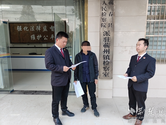 張國(guó)銀(左)向犯罪嫌疑人張某公開宣告送達(dá)《不起訴決定書》。通訊員 供圖