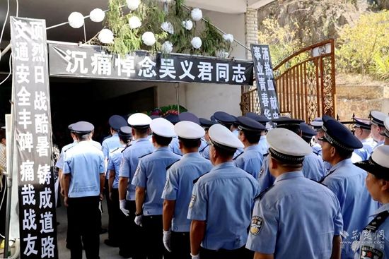 挽歌奏響,淚濕眼眶?,F(xiàn)場(chǎng)人員懷著無比沉痛的心情,深切緬懷因公犧牲的吳義君同志,并向遺體致敬默哀。