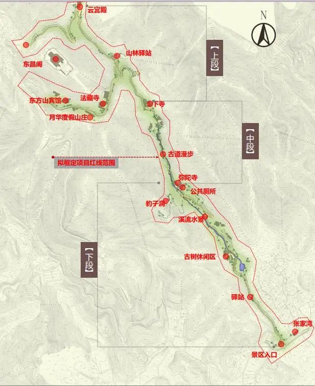 據(jù)了解,東方古道豹子洞區(qū)域包含彌陀寺、下寺、陸東方、豹子洞等多景點(diǎn),林木茂密、山澗清流,古道滄桑、環(huán)境優(yōu)美。結(jié)合城市更新背景及張家灣民俗文化村的建設(shè),未來(lái)將是極具游覽價(jià)值的新景區(qū)。
