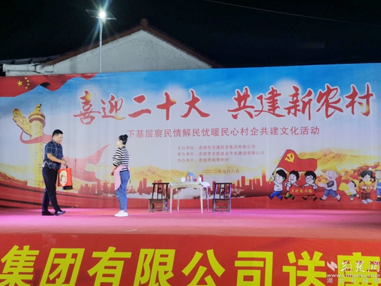 荊楚網(wǎng)(湖北日報(bào)網(wǎng))訊(通訊員李傳麗 楊婷 楊芳)中秋節(jié)即將來臨,為豐富廣大黨員干部群眾的精神文化生活,營造節(jié)日喜慶氛圍。9月8日晚,赤壁交投集團(tuán)在該市趙李橋鎮(zhèn)趙李橋村舉辦“喜迎二十大 共建新農(nóng)村”送廉文化下鄉(xiāng)主題晚會,以文化浸潤凝聚黨心民心,用文化展現(xiàn)從嚴(yán)治黨,弘揚(yáng)清風(fēng)正氣。
