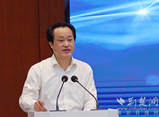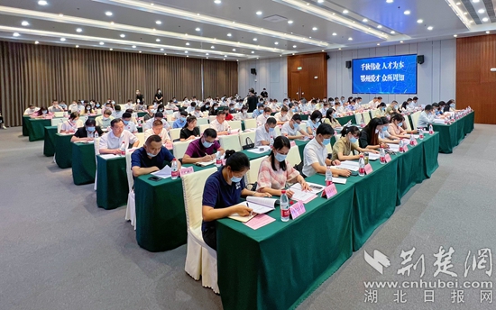 鄂州市委組織部常務(wù)副部長、市委人才辦主任龔慎作介紹。金康 攝