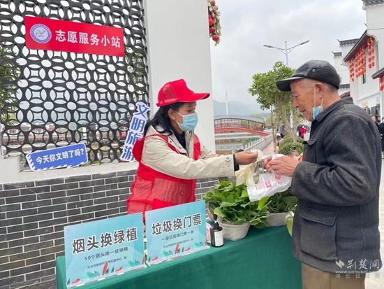 活動(dòng)現(xiàn)場(chǎng),大冶市新時(shí)代文明實(shí)踐中心還設(shè)置了志愿服務(wù)小站,開展“垃圾換門票”“煙頭換綠植”的文明旅游主題活動(dòng)。