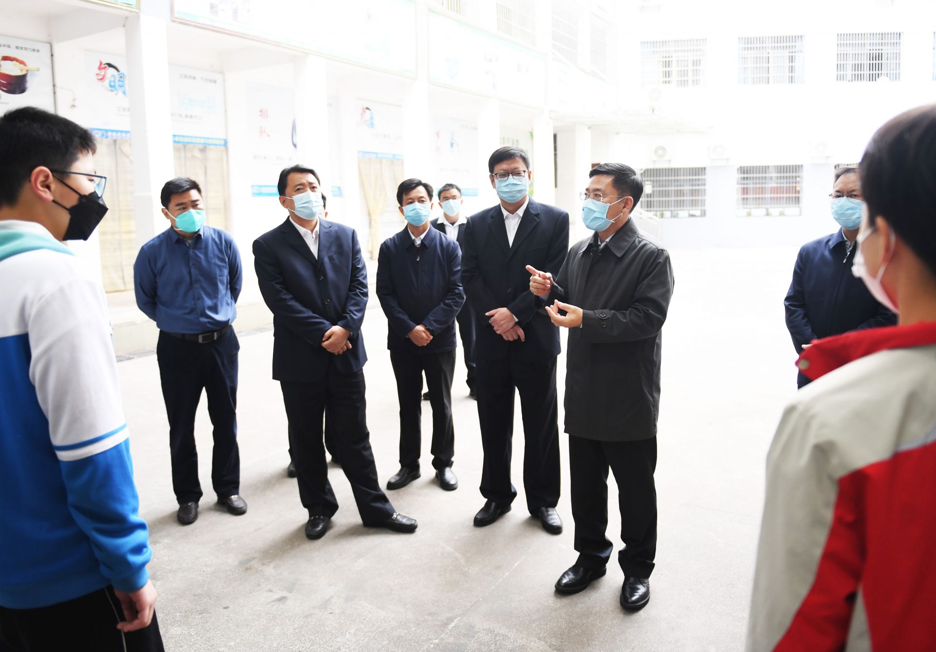 因前期篩查發(fā)現(xiàn)有陽性病例活動軌跡,崇陽縣眾望高中實行靜默管理,部分師生在校園內(nèi)接受健康監(jiān)測,他們的身體情況、生活保障和心理狀況牽掛著市領(lǐng)導(dǎo)的心。孟祥偉、楊軍來到學(xué)生宿舍樓下,在采取戴口罩、間隔一米等必要防護(hù)措施后,和被監(jiān)測學(xué)生、老師親切交流,詳細(xì)了解監(jiān)測措施落實、日常飲食及營養(yǎng)保障、心理疏導(dǎo)等情況。