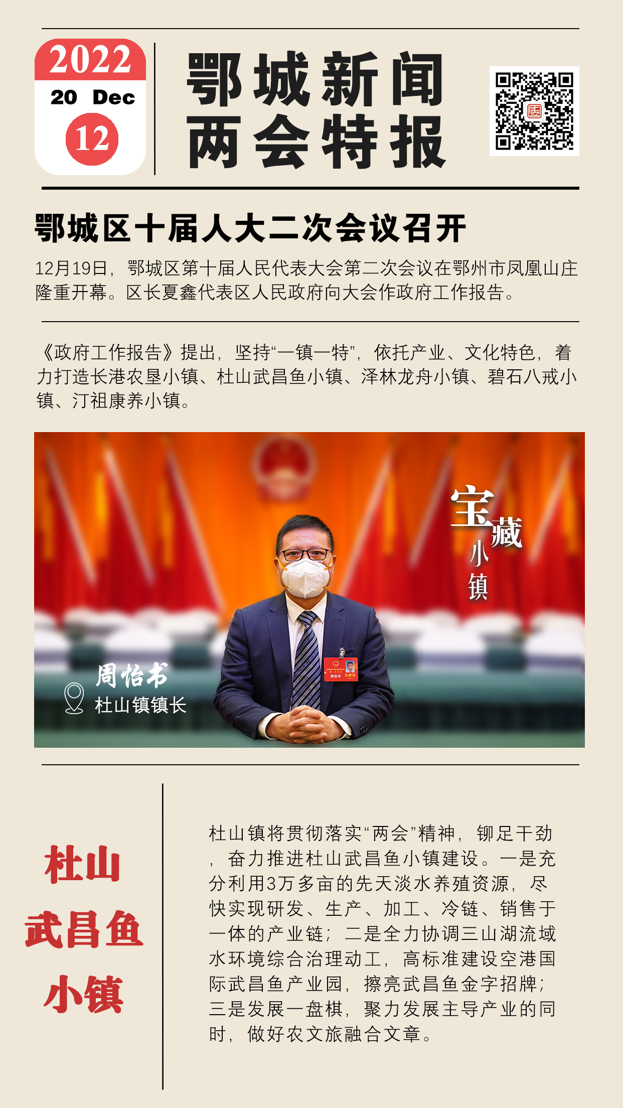 杜山鎮(zhèn)將貫徹落實“兩會”精神,鉚足干勁,奮力推進杜山武昌魚小鎮(zhèn)建設。