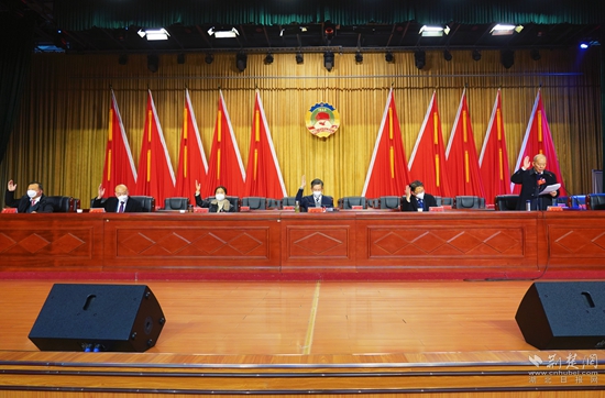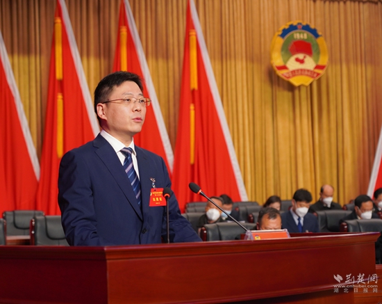 華容區(qū)政協(xié)黨組書記、主席熊枝江作《中國人民政治協(xié)商會議華容區(qū)第九屆委員會常務(wù)委員會工作報告》。