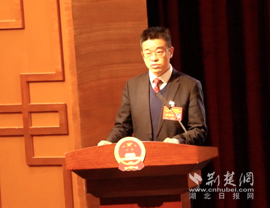 咸安區(qū)委副書(shū)記、區(qū)長(zhǎng)李軍平作政府工作報(bào)告。黃錚攝