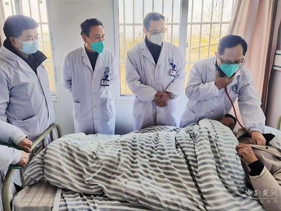 荊楚網(wǎng)(湖北日報網(wǎng))訊(通訊員程曉林 李 勇 饒國?。?/strong>1月6日下午4時10分,在浠水縣綠楊鄉(xiāng)衛(wèi)生院三樓住院部病房里,浠水縣人民醫(yī)院副院長、主任醫(yī)師黃大雄帶領(lǐng)該院第5醫(yī)療救治專家組主任醫(yī)師付鴻鷹、副主任醫(yī)師柴小利同綠楊衛(wèi)生院醫(yī)務(wù)人員一起,給82歲的新冠感染患者張鳳銀婆婆進行會診。