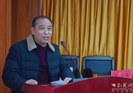熊勝前作當(dāng)選主席發(fā)言。金康 攝
