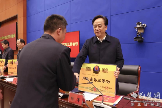 會議由市公安局黨委副書記、副局長牟波主持,市公安局黨委委員、政治部主任陶叢林宣讀了2022年度全市公安機(jī)關(guān)表彰獎勵情況,共通報(bào)記功、嘉獎和表彰的個(gè)人和集體184個(gè)。