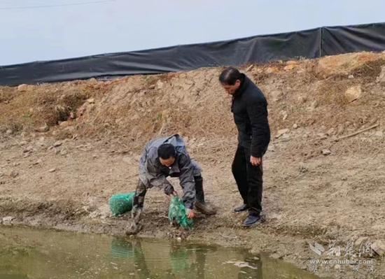 “立春前一天,正是蟹苗投放的最佳時(shí)機(jī),清塘、消毒、投苗,一步都不容忽視!你們看,這些背殼有光澤、顏色為青灰色、大小統(tǒng)一的就是精品長腿五母蟹苗了。”茅山村“兩委”主動(dòng)對(duì)接的江蘇高淳專業(yè)養(yǎng)蟹技術(shù)人員翻動(dòng)著蟹苗向大家介紹道。