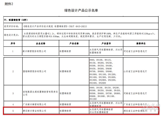 荊楚網(wǎng)(湖北日?qǐng)?bào)網(wǎng))訊(通訊員 柯雪梅 尹建)2月9日,工信部發(fā)布《2022年度綠色制造名單公示》,經(jīng)黃石市和湖北省工信廳評(píng)審?fù)扑]及國家工信部專家評(píng)審,黃石新興管業(yè)有限公司球墨鑄鐵管產(chǎn)品榮獲綠色設(shè)計(jì)產(chǎn)品認(rèn)定,意味著公司在綠色制造領(lǐng)域中取得了新突破。