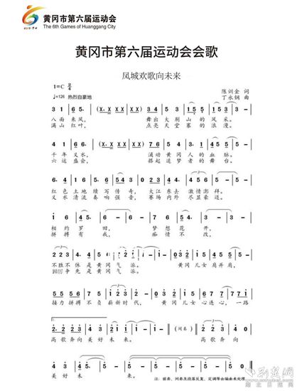 會(huì)歌《鳳城歡歌向未來(lái)》,由黃岡籍作家陳訓(xùn)金作詞,黃岡師范學(xué)院青年作曲家丁永鋼作曲。作品主題突出,風(fēng)格清新,節(jié)奏明快、旋律優(yōu)美,催人奮進(jìn)。