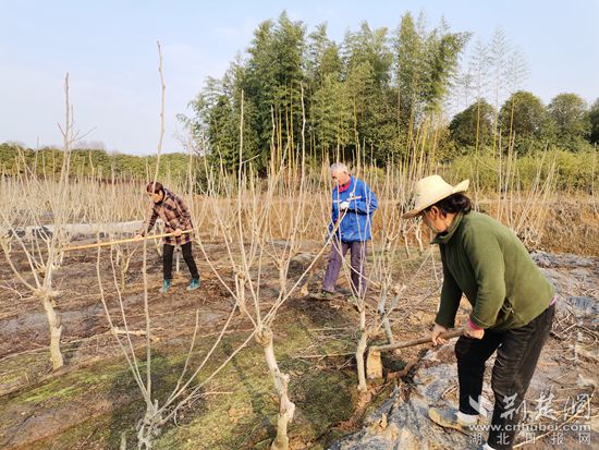 在橫溝橋鎮(zhèn)豐順農業(yè)生態(tài)采摘園,10多名果農正在精心在給60余畝桑葚樹松土、施農家肥。只見果農們二人一組,一個打坑,一個施肥,然后覆土蓋膜,配合默契。