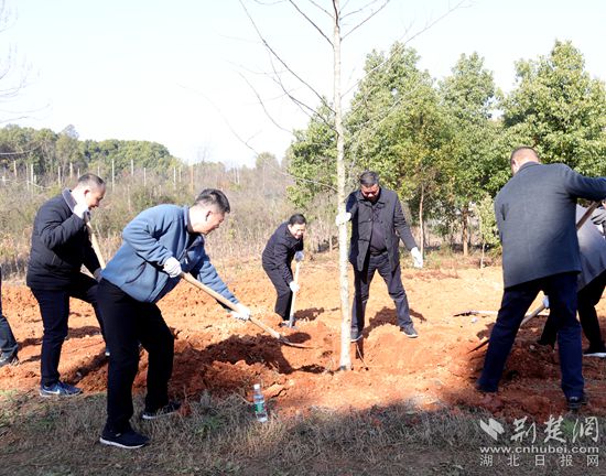 2月27日,在S360省道官埠段,春日暖陽,綠意盎然。咸寧市和咸安區(qū)200余名黨員干部正在揮揪植樹,1300棵株樹、香楓、紅櫸立馬成行,夾道迎賓。干群熱火朝天的干勁,恰似春風撲面。