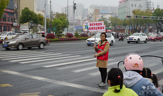 志愿者宣傳文明交通安全出行。通訊員 供圖