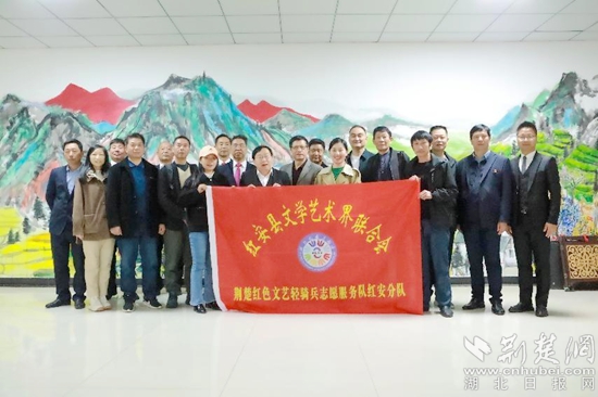 鄉(xiāng)村振興的這一示范點——普安橋村也吸引了文藝工作者的注意。紅安縣作協(xié)、攝協(xié)、書協(xié)、曲藝家協(xié)會一行30多人來到普安橋送《紅安文學(xué)》、送書法、為村民拍全家福、為群眾送文化大餐,前來的村民都拍手稱贊。