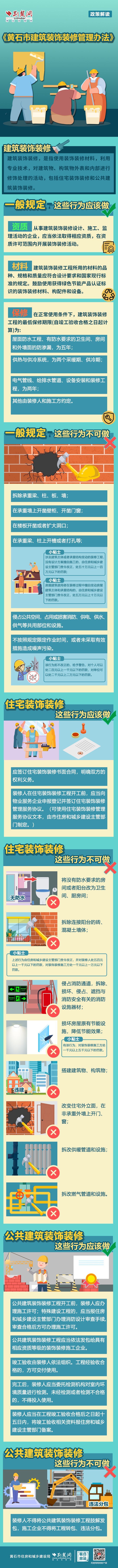 荊楚網(wǎng)(湖北日報(bào)網(wǎng))訊(記者阮瓊 劉璐 通訊員李迪)今年5月1日起,《黃石市建筑裝飾裝修管理辦法》正式施行。根據(jù)《辦法》,黃石裝飾裝修應(yīng)該注意什么,具體有哪些是禁止行為?一圖帶您全了解。