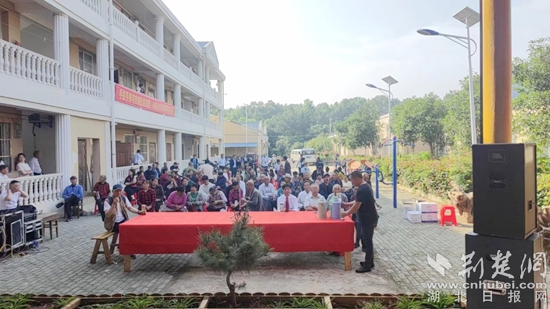 上午八點(diǎn)過后,高樓村文化禮堂前,坐滿了前來觀看的群眾。由紅安縣文藝志愿者、曲藝家協(xié)會(huì)選送的戲曲節(jié)目正式開演,讓村民在家門口就能享受免費(fèi)的文化大餐。