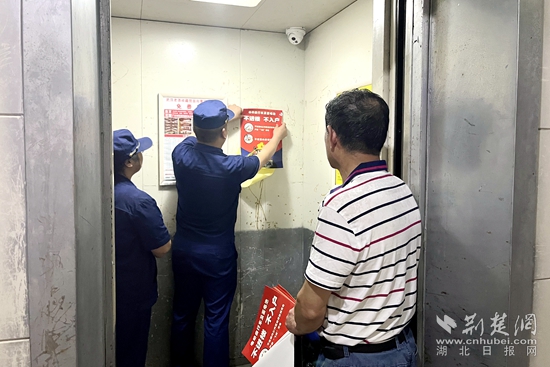 對此,檢查人員要求物業(yè)管理單位要積極通過業(yè)主群發(fā)送安全警示、入戶宣傳提示等方式加強(qiáng)宣傳教育,同時加強(qiáng)日常巡查檢查,及時消除隱患。隨后,檢查人員和物業(yè)人員在小區(qū)宣傳欄、電梯內(nèi)、樓道口等位置張貼電動車消防宣傳海報,提示居民規(guī)范使用電動車。