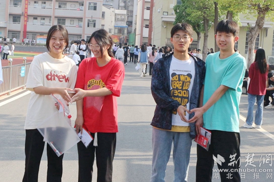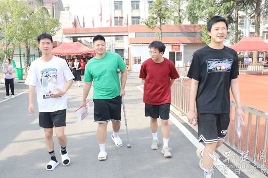 他們當中有的考生身穿紅色衣服,預??荚嚧蠼荩辉谶M考場前,有的考生圍在一起,擺出愛心的手勢,露出自信的笑容,高呼“戰(zhàn)勝高考,我能,我一定能”的口號響徹云霄;有的考生雖然在考前腿部或頭部受傷,但他們沒有顯示畏懼的神態(tài),反而展現(xiàn)了更堅強的毅力與一往無前的勇氣,面帶笑容,堅定地邁入考場……一幕幕從容的畫面詮釋著勇毅前行,一張張自信的笑臉展示著超越自我。