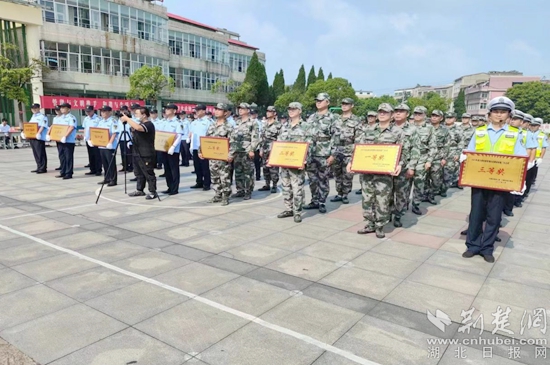 來自樓街道執(zhí)法中心、3個(gè)物業(yè)公司、3個(gè)股經(jīng)社和街道輔警8支隊(duì)伍,共80名執(zhí)法隊(duì)員參加會(huì)操比武。