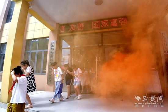 伴隨著陣陣報警聲,消防演練開始。孩子們在消防員的帶領下,用手捂住口鼻、半彎腰,穿過“濃煙”,有序撤離,安全到達指定地點,體驗了發(fā)生火災時的逃生技巧。隨后,