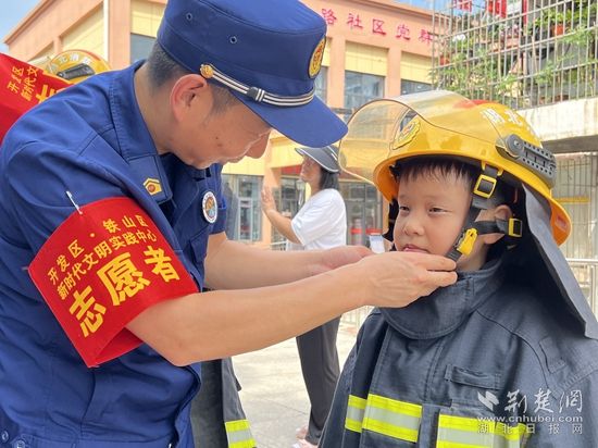 消防員從滅火器的基本原理,到使用步驟,“拔下插銷,握住軟管,噴嘴對準火焰根部……”一步步教孩子們如何正確使用滅火器,并讓孩子們進行實際操作?,F(xiàn)場,消防員還為孩子們講解了有關消防車輛裝備及器材的用途,孩子們爭先恐后穿上戰(zhàn)斗服,體驗當一回“小小消防員”。