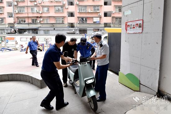 7月2日起,該小區(qū)物業(yè)在樓道醒目處張貼《關(guān)于禁止電動自行車、摩托車在樓道內(nèi)停放的公告》,要求電動自行車必須停放至小區(qū)停車棚或劃線區(qū)域,并于7月5日前整改完畢,否則將予以拖離。7日上午,聯(lián)合檢查組對小區(qū)個別仍然停放在樓道內(nèi)的車輛進(jìn)行依法清理移除。
