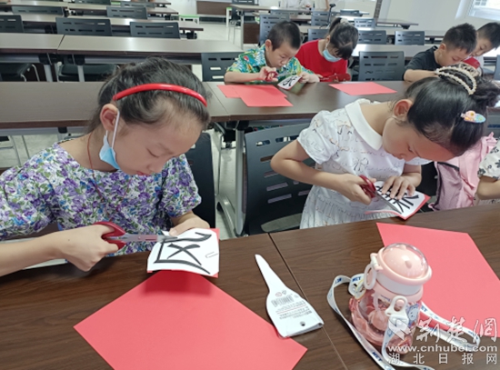 而后,小朋友們你一言我一語,討論著怎么把作品剪好。雖然很多小朋友是第一次接觸剪紙,但完成的作品也是有模有樣。大家剪“廉”字、刻“蓮”花,一雙雙巧手精心雕琢,一幅幅作品蘊含廉潔情懷,“廉”心共筑的美好愿景通過剪紙得以表達,崇廉尚潔的正能量也通過作品互相傳遞。