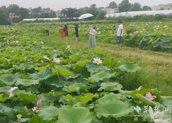 荊楚網(湖北日報網)訊(通訊員毛紅平)7月16日,天氣稍微轉涼,紅安縣城關鎮(zhèn)小豐山村四組的300畝連片“大寨田”里的荷花漸次綻放,粉荷碧葉亭亭玉立,美麗動人。一群身著旗袍的游人打著油紙傘穿梭于層層疊疊的荷葉中,伴隨著搖曳生姿的荷花,或歌詠或朗誦或造型,儼然形成夏日里一道靚麗的風景線。