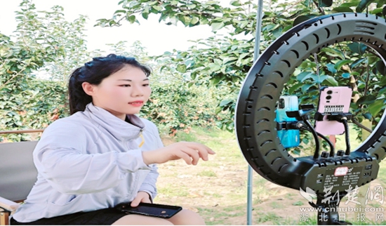 阡陌農場的一大片翠冠梨壓彎了樹枝,農場主擔心貨賣不出去。王七億、吳朋花來到農場后,架起機械,開始拍攝,然后開始直播帶貨:“各位粉絲,我現在是在主席故里—紅安縣高橋鎮(zhèn)阡陌農場,這里有一大批新鮮的翠冠梨等待著大家嘗鮮,歡迎大家線上選購?!?/p>