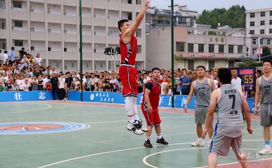 隨著裁判員哨聲響起,施家畈隊與紅色隊展開激烈比拼,拉開此次比賽的揭幕戰(zhàn)。球場上,球員們斗志昂揚;球場下,村民們熱情高漲?!疤柿耍诖院竽芸吹礁噙@樣的比賽?!被@球愛好者鄭森直呼過癮。