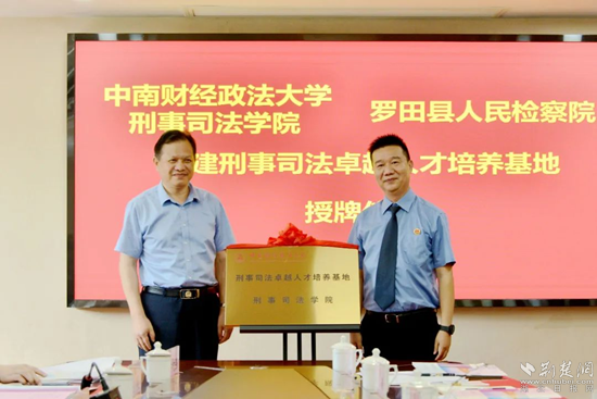 荊楚網(wǎng)(湖北日報網(wǎng))訊(通訊員王章?。?/strong> “預(yù)祝我們將基地建設(shè)成品牌,出課題、出成果、出人才?!?月19日,在一片熱烈的掌聲中,中南財經(jīng)政法大學(xué)刑事司法學(xué)院與羅田縣人民檢察院共建刑事司法卓越人才培養(yǎng)基地簽約揭牌儀式圓滿舉行。