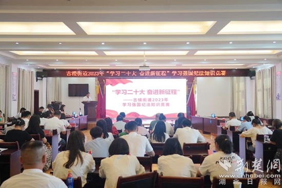 荊楚網(wǎng)(湖北日報(bào)網(wǎng))訊(通訊員丁元中)7月26日下午,鄂城區(qū)古樓街道舉辦“學(xué)習(xí)二十大,奮進(jìn)新征程”學(xué)習(xí)強(qiáng)國紀(jì)法知識(shí)競賽。全街社區(qū)、股經(jīng)社、中心學(xué)校、市場監(jiān)管所、飛鵝衛(wèi)生服務(wù)中心、怡亭銘衛(wèi)生服務(wù)中心、街辦機(jī)關(guān)等20支代表隊(duì)60名選手參賽。