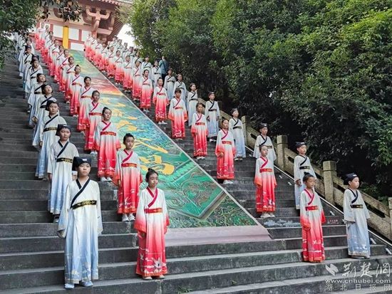 上午9點(diǎn)半,在鄂州市西山武昌樓前舉行了“百人齊誦快閃”活動(dòng),現(xiàn)場(chǎng)浸潤著濃厚的詩詞氛圍。