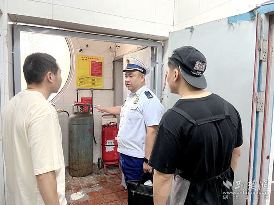 期間,檢查人員重點檢查了場所內(nèi)消火栓和滅火器是否完好有效、燃?xì)鈭缶b置運(yùn)行是否正常、廚房燃?xì)廛浌苁欠穹弦?、燃?xì)夤芫€和閥門等設(shè)備是否存在老化、油煙管道及灶具是否定期清理、有無亂搭亂接大功率插頭和電線、場所從業(yè)人員是否掌握消防安全常識和撲救初起火災(zāi)的能力等情況。