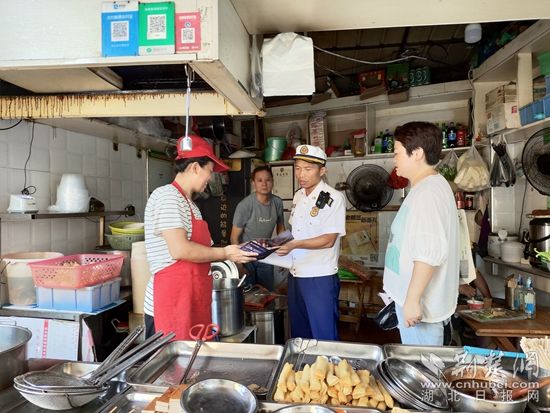 在西塞山區(qū),消防人員走進沿街門面開展消防安全檢查宣傳?!疤鞖庋谉?,用電量劇增,請不要私拉亂接線路、超負(fù)荷用電,要經(jīng)常檢查線路敷設(shè)是否完好?!毕廊藛T一邊檢查,一邊提醒商戶要經(jīng)常開展消防隱患自查自改,同時要熟練掌握滅火器、消火栓等器材使用方法。下陸區(qū)消防救援大隊結(jié)合夏季高溫防火特點,整合戶外大屏、社會單位LED屏幕等社會資源循環(huán)播放夏季防火提示公告、高溫防火提示,提醒廣大人民群眾規(guī)范用火、用氣、用電。