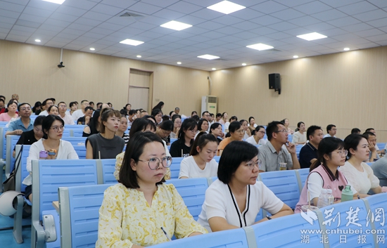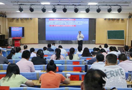 8月16日上午,黃石八中總校長(zhǎng)、特級(jí)教師、正高級(jí)教師郭茂榮作題為《務(wù)教育之本 悟成長(zhǎng)之道—教師工作坊建設(shè)的實(shí)踐與思考》的主題講座。他通過成長(zhǎng)經(jīng)歷和典型案例,運(yùn)用風(fēng)趣的語言深刻詮釋了“立德樹人是教育之本,知其心是教師之本,悟其道是成長(zhǎng)之要”,還交流了教師工作坊建設(shè)、運(yùn)行、管理、評(píng)價(jià)等方面的經(jīng)驗(yàn)。