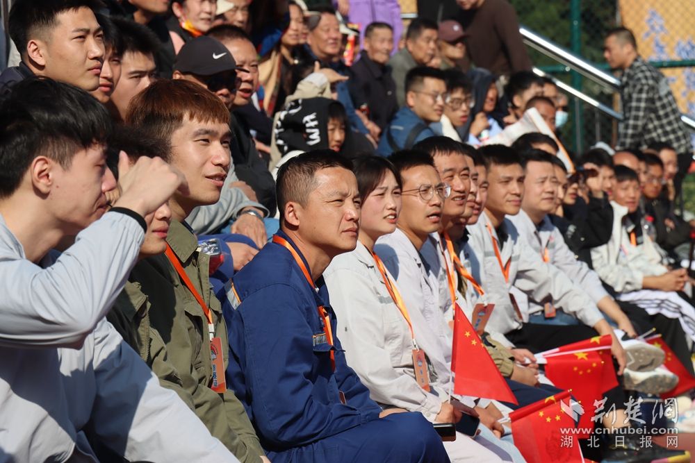 職工關(guān)注賽場(chǎng)情況。阮瓊 攝