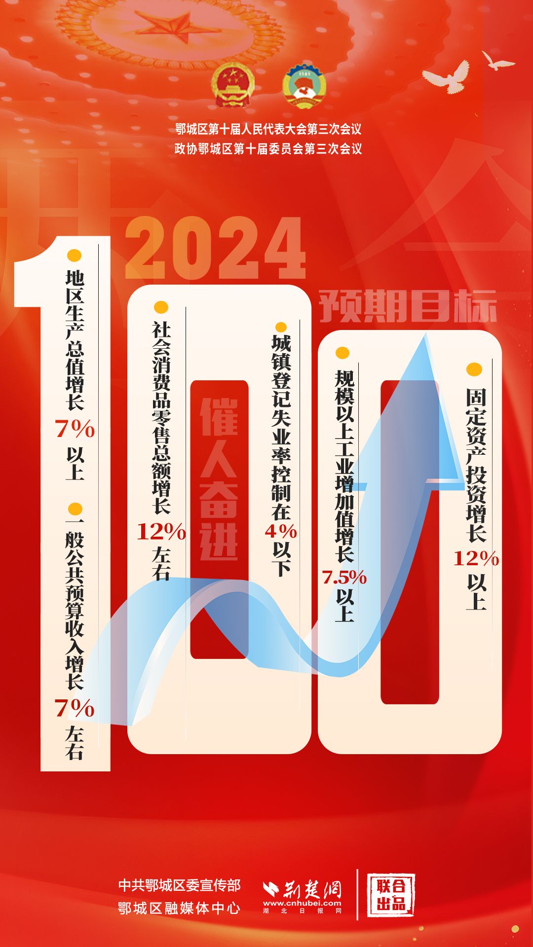 “100”解釋:2024年經(jīng)濟社會發(fā)展主要預(yù)期目標(biāo)是,地區(qū)生產(chǎn)總值增長7%以上,一般公共預(yù)算收入增長7%左右,社會消費品零售總額增長12%左右,城鎮(zhèn)登記失業(yè)率控制在4%以下,規(guī)模以上工業(yè)增加值增長7.5%以上,固定資產(chǎn)投資增長12%以上,服務(wù)業(yè)增加值增長7.5%左右。